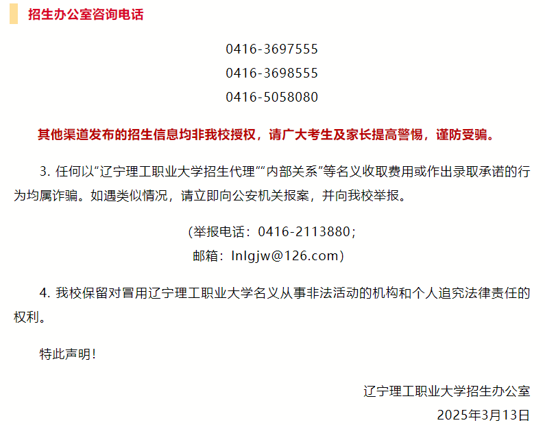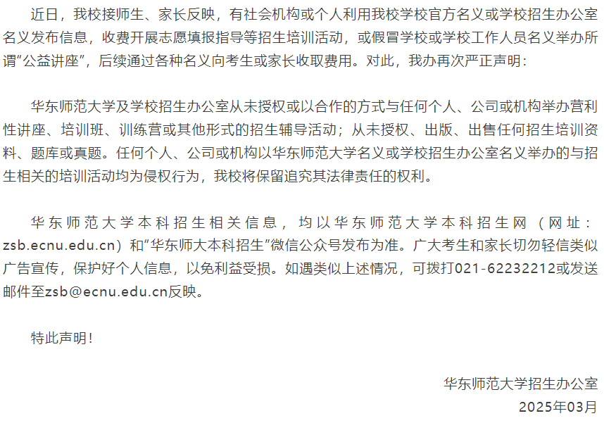 近期,部分社会机构及个人公然以高校名义,发布一系列不实信息,包括收费开展志愿填报指导、举办盈利性培训,甚至宣称能够提供“特殊录取名额”。此类虚假信息不仅误导考生及家长,更严重扰乱了高校招生的正常秩序。